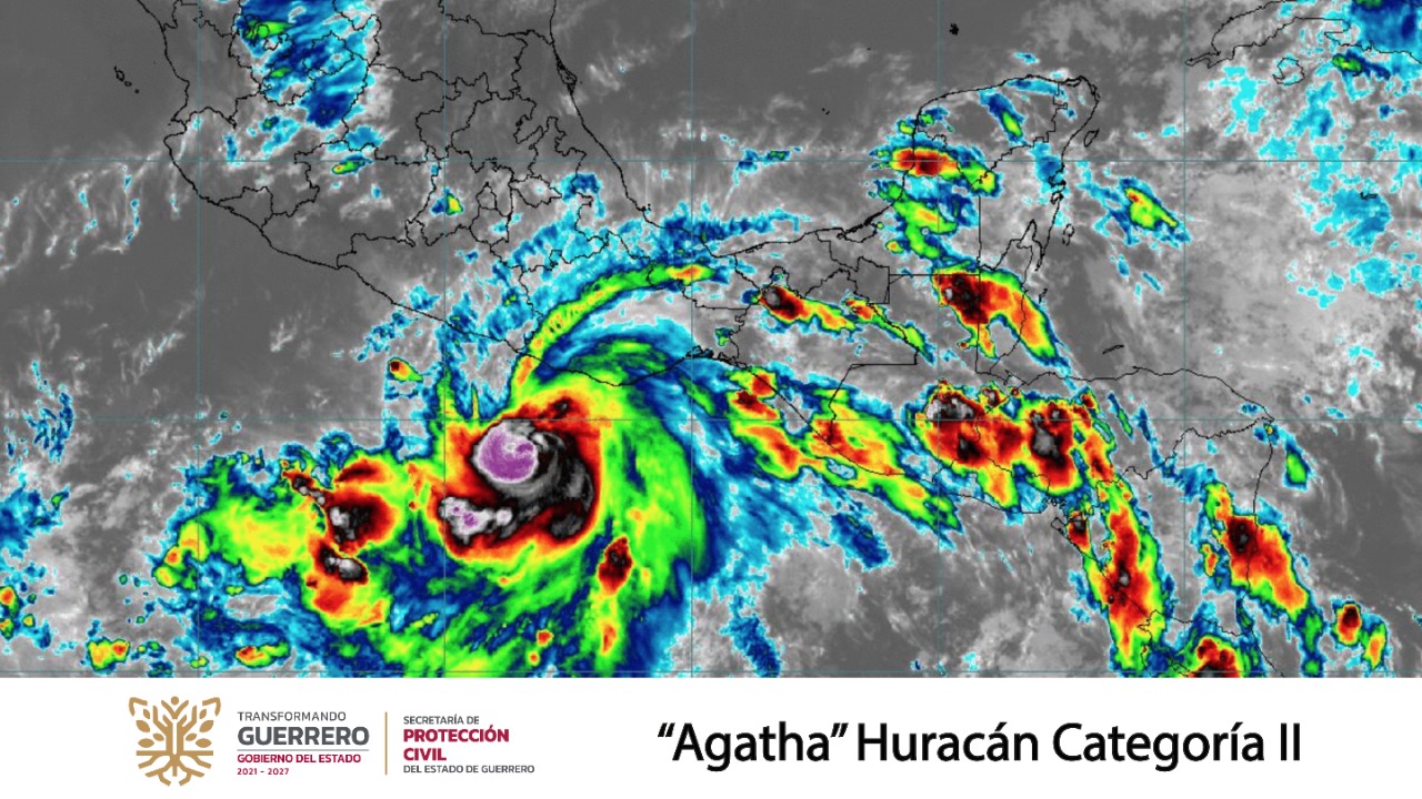 El Gobierno del Estado se mantiene en alerta ante la cercanía y trayectoria del huracán “Agatha” de categoría 2, el cual la noche de este domingo se ubicaba al sur de las costas de Guerrero y Oaxaca, se prevé que origine lluvias puntuales intensas en la mayor parte del territorio guerrerense, además de oleaje de 2 a 4 metros de altura en la franja costera