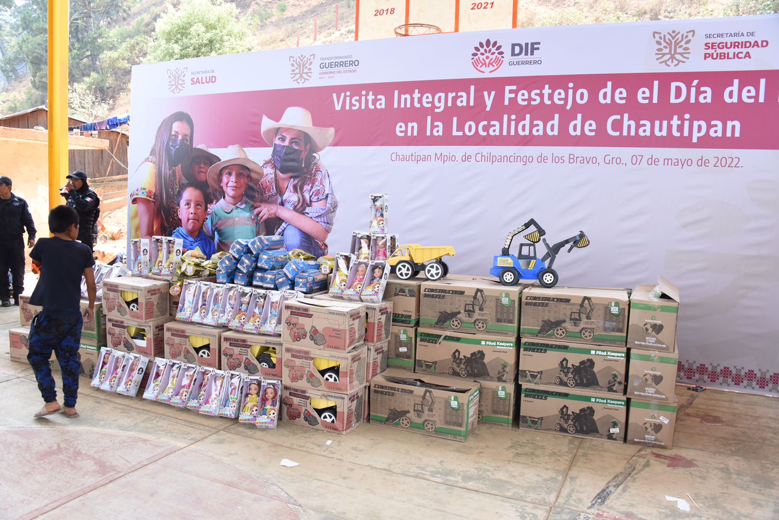 Chautipan, Mpio. de Chilpancingo, Gro., 7 de mayo del 2022.- Este sábado, por indicaciones de la gobernadora Evelyn Salgado Pineda y la presidenta del Sistema DIF Estatal, Liz Adriana Salgado Pineda, dependencias estatales llevaron alegría y diversión a la niñez del poblado de Chautipan, en la Sierra del municipio de Chilpancingo, además de acercar a la población servicios integrales para su beneficio, para fortalecer la estrategia de proximidad social dentro del Plan de Apoyo a La Sierra.